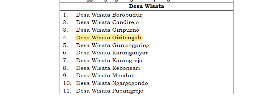 Pembangunan Kepariwisataan Kabupaten Magelang Tahun 2014-2034 Desa Giritengah